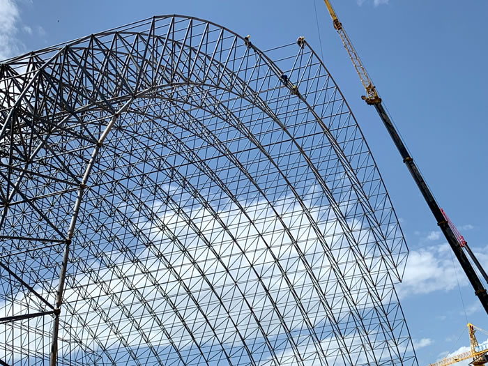 (2)网架加工前应对现场尺寸进行复测,确认无误后方可进行加工、安装;网架制作、运输、安装应遵守《空间网格结构技术规程》JGJ7-2010、《钢网架防城港螺栓球节点》JG/T 10-2009、《钢网架防城港螺栓球节点用高强度螺栓》 GB/T 16939-2016、《防城港钢结构防城港工程防城港施工规范》 GB50755-2012、《防城港钢结构防城港工程防城港施工质量验收标准》 GB50205-2020。